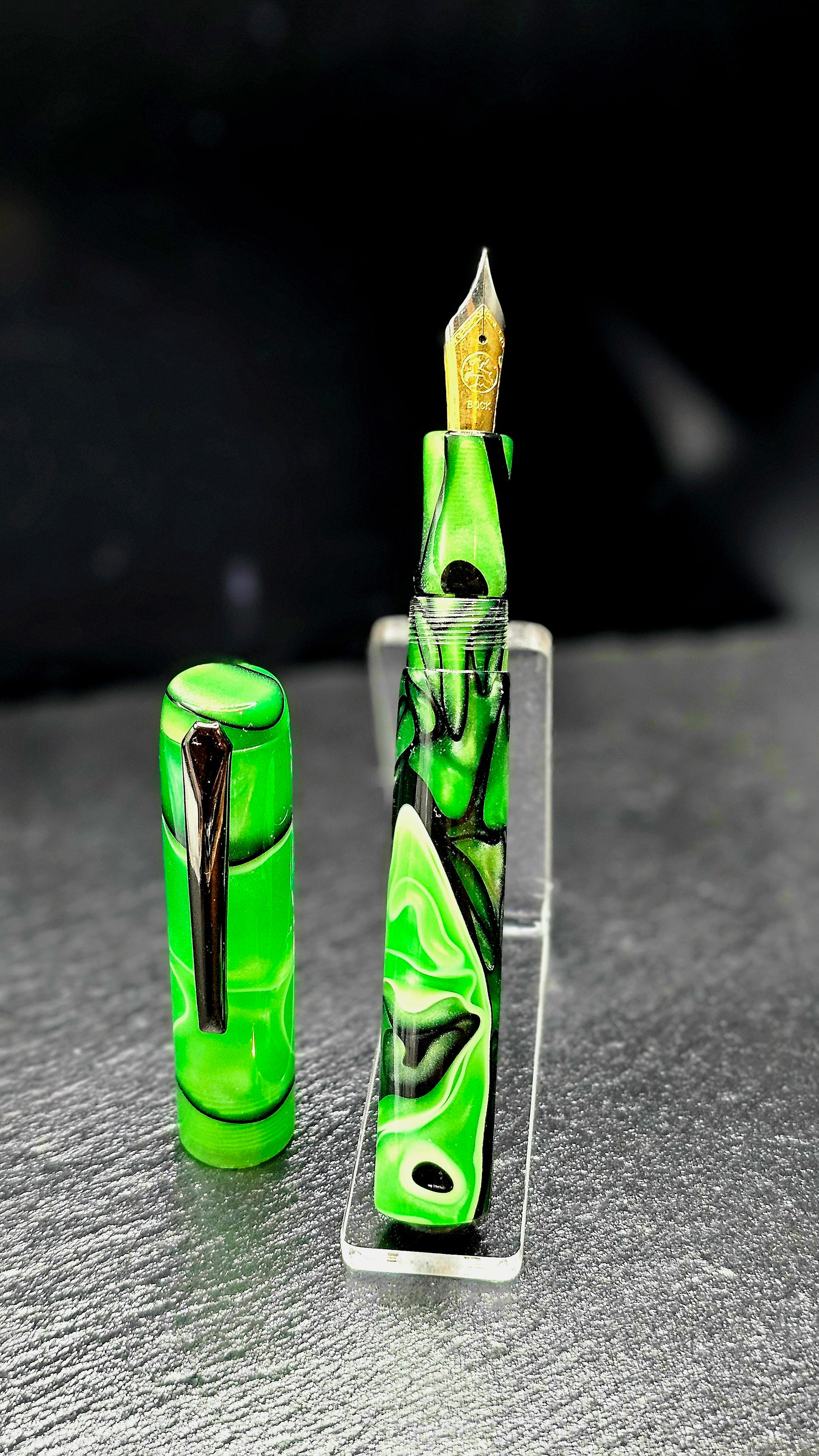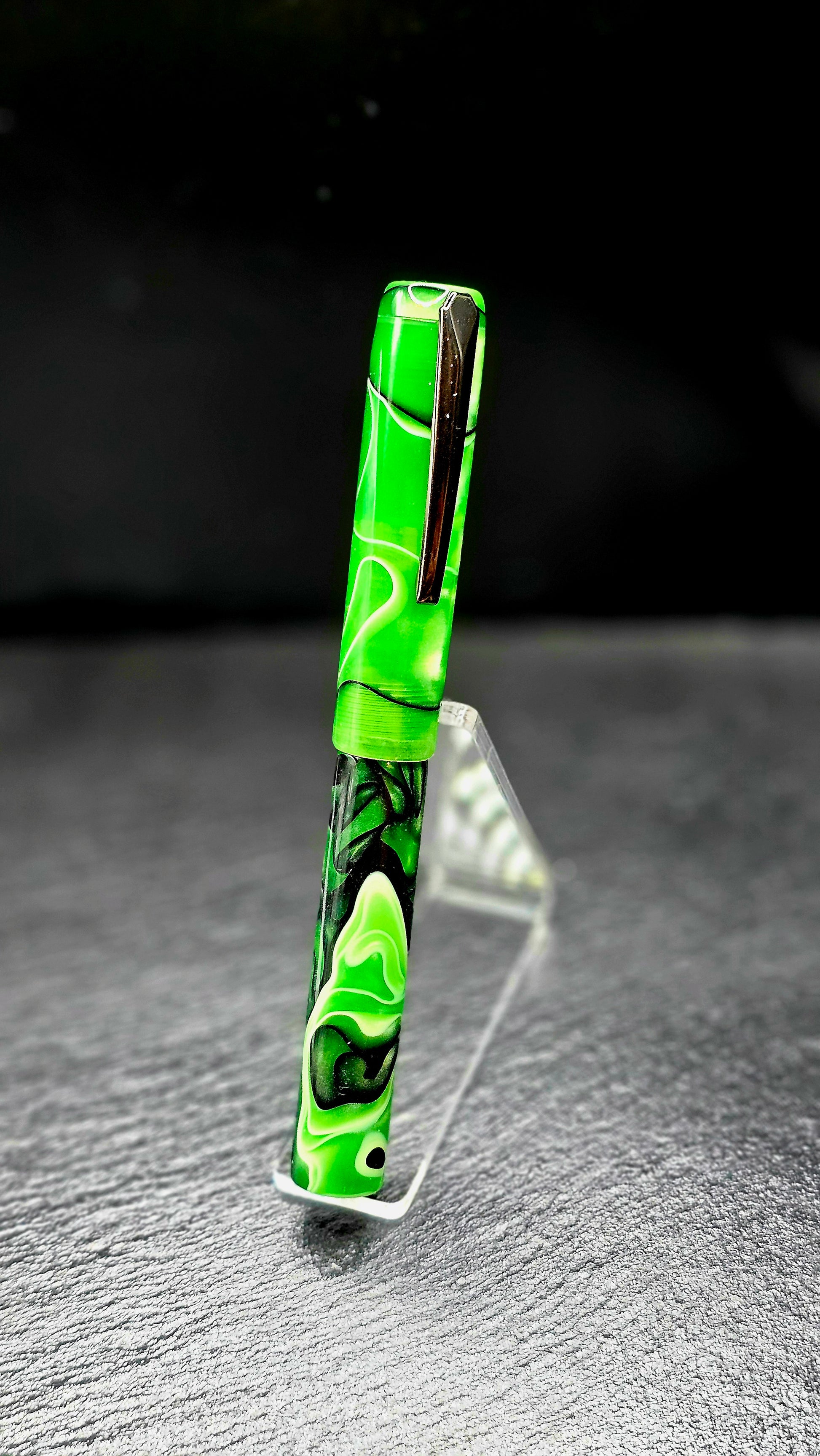 Unleash your story with the Artisan Emerald Pen, a handcrafted writing instrument forged for those who write with purpose. Its bold resin swirl—an alchemy of deep emerald and obsidian black—captures the energy of a storm caught in glass. The dual-tone nib, kissed with silver and gold accents, offers a smooth, balanced glide across the page, whether you're journaling your next chapter or signing a moment that matters.