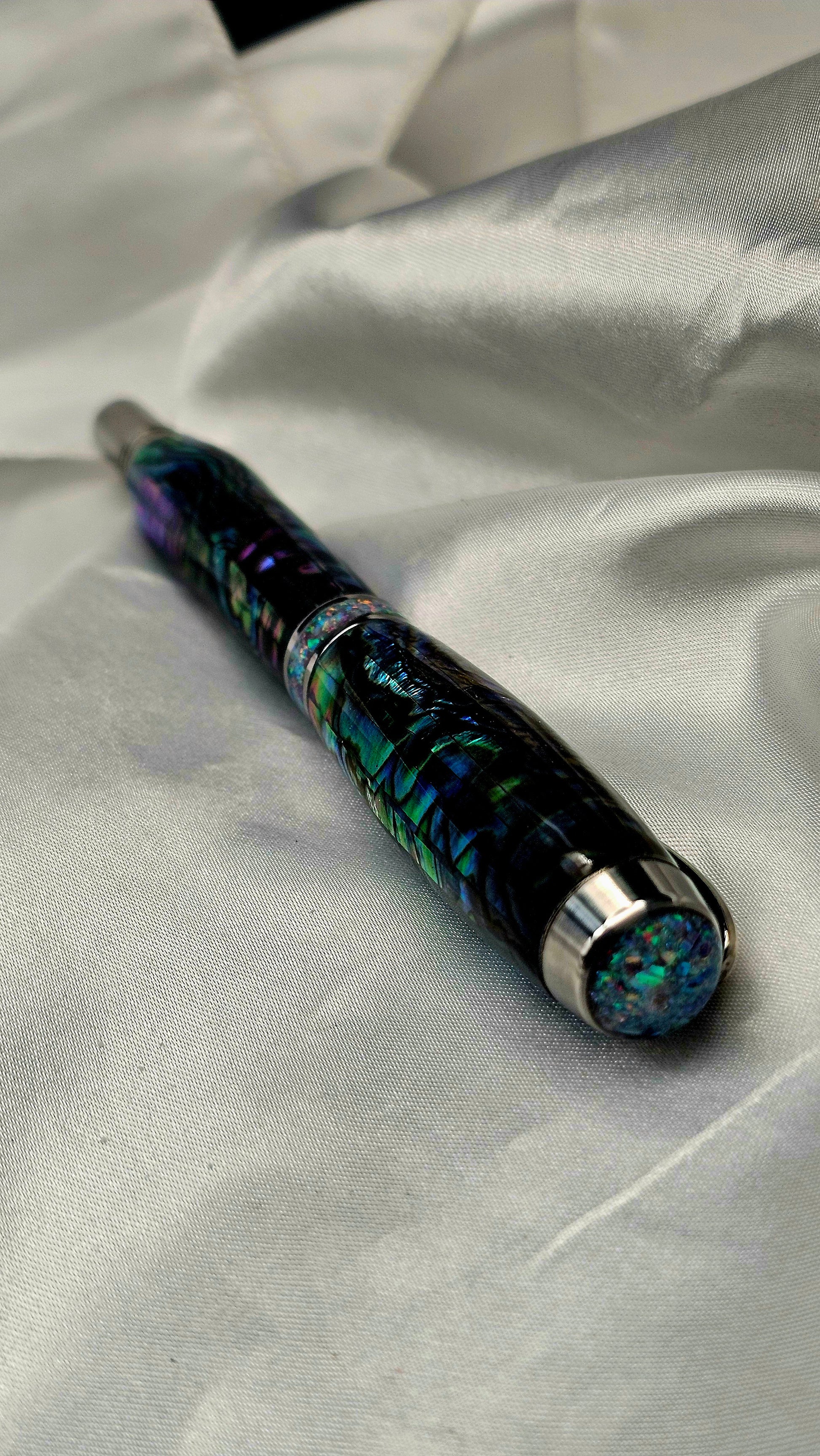 • Paua Abalone Shell – Rich in iridescent blues, greens, and purples, this natural shell forms the pen’s body with a vibrant, mosaic-like finish.