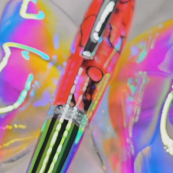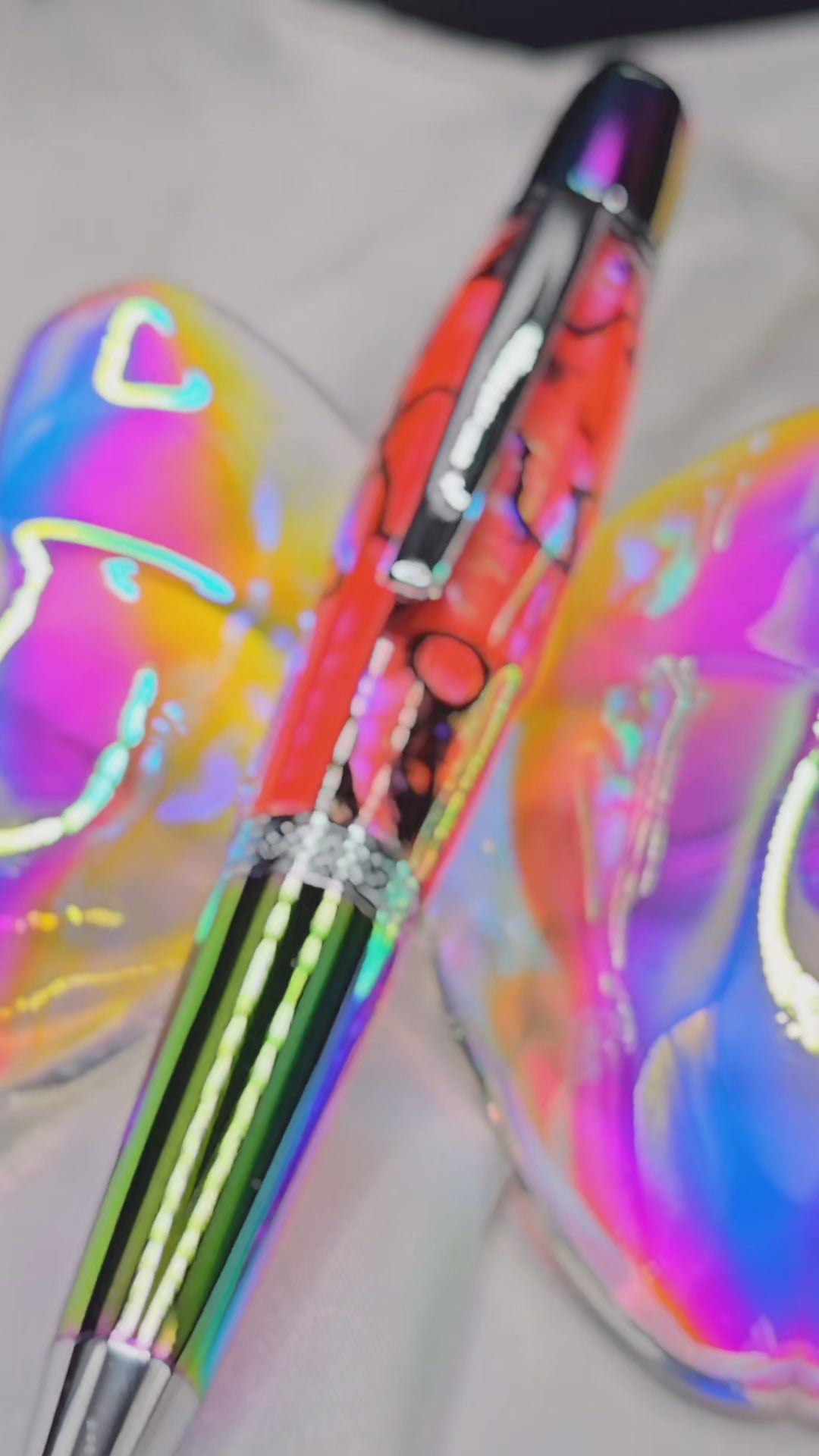 This handcrafted pen features Monarch hardware from Turners Warehouse , known for its elegant profile and smooth writing performance. The barrel showcases a stunning Paua Abalone body made here local by BlankWerks , radiating iridescent hues of blue, green, and violet that shift with the light—each piece a unique celebration of natural beauty and artisan skill. Nestled against a cut crystal dish and set against a black backdrop, the pen’s luxurious presence is unmistakable. It’s more than a writing tool—it’s a collector’s piece that tells a story of precision, locality, and elevated design
