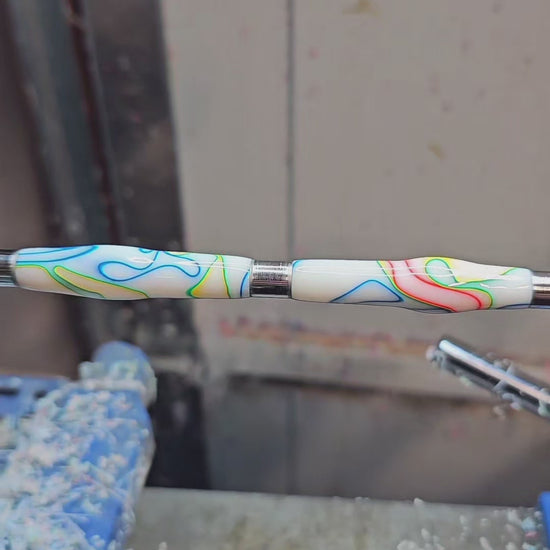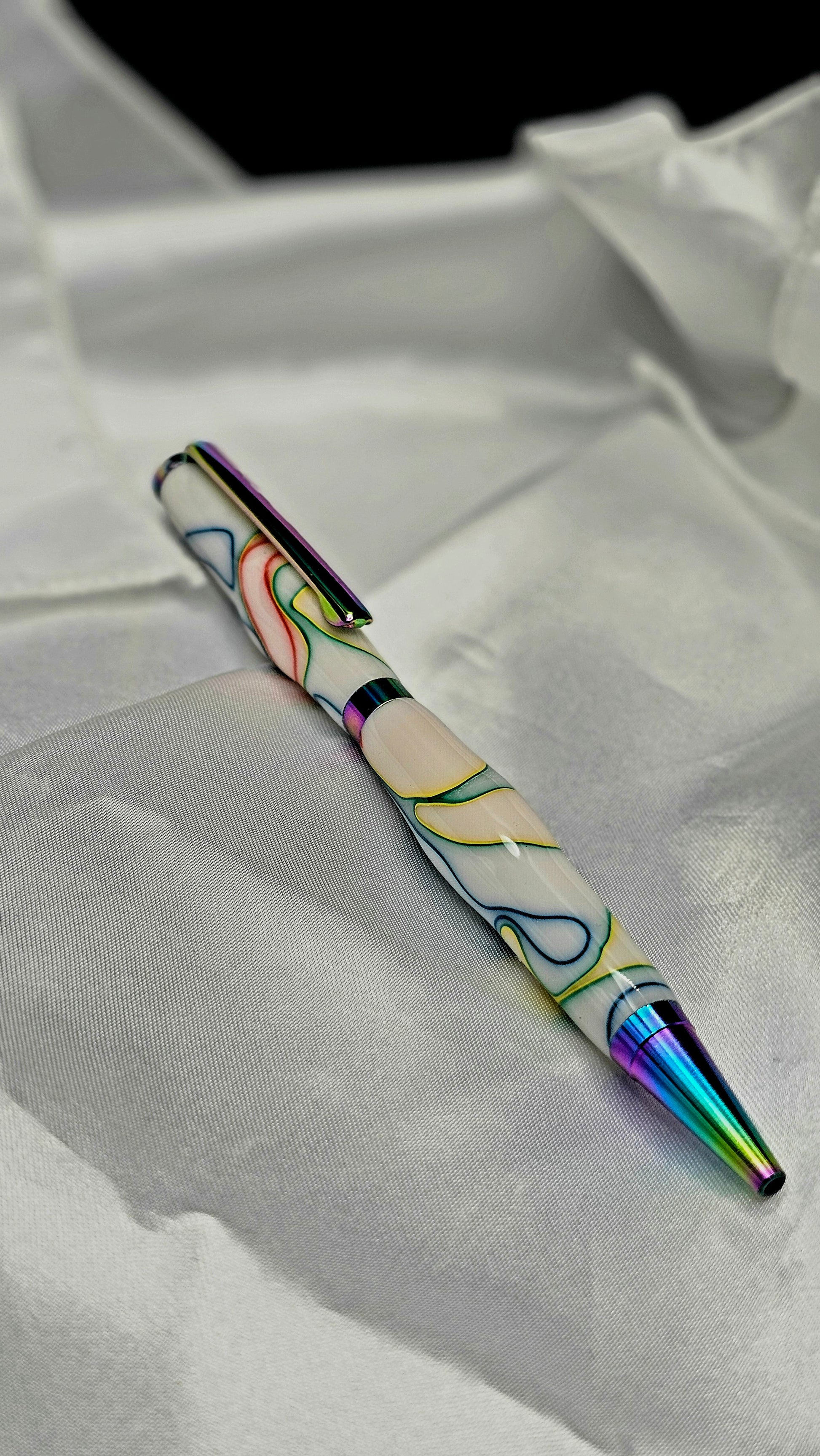 Swirled with hues of sunrise and aurora, Sky Prism captures the fleeting brilliance of light as it bends through atmosphere. Set atop a crystal lotus, this piece evokes serenity, motion, and the quiet power of nature’s palette. Finished with iridescent hardware and sculpted precision, it’s a tribute to the skies above Tennessee—where color meets craft.
