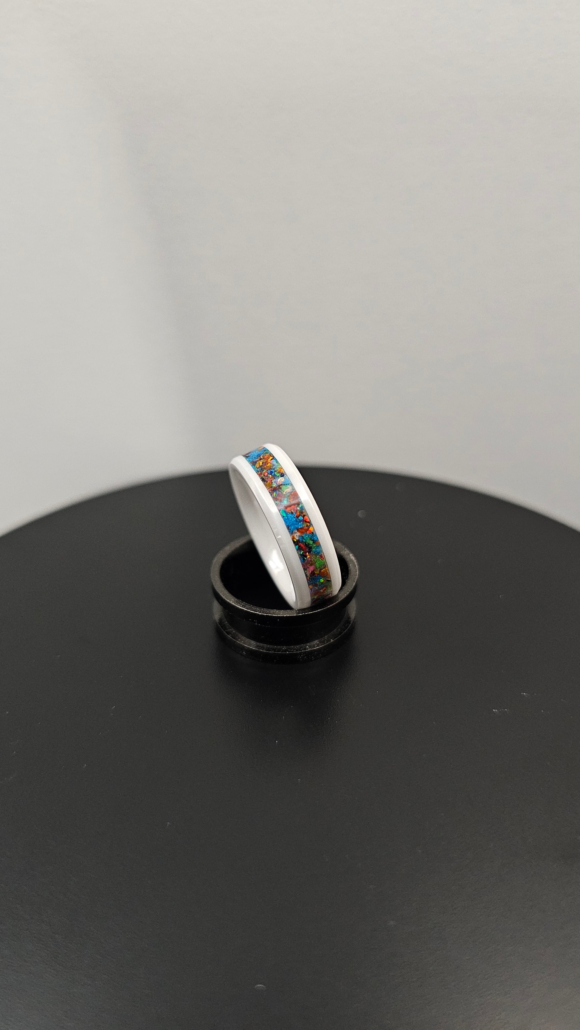*Materials: White Ceramic Ring, with Mixed Opals and Glow Powders